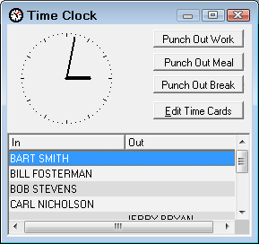 Displays more reason buttons on the Employee Time Clock window. Employees must select one of these buttons to clock out; there is no plain Punch Out button.