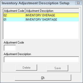 Inventory Adjustment Descriptions