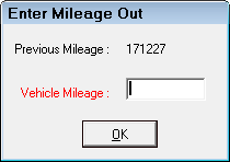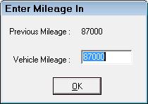 - Leave Mileage Out Blank - the Previous Mileage will be displayed but the entry field will be left blank.