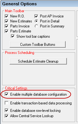 - In the Configuration module, click File > General Options > Critical Settings section> Enable multiple database configuration.