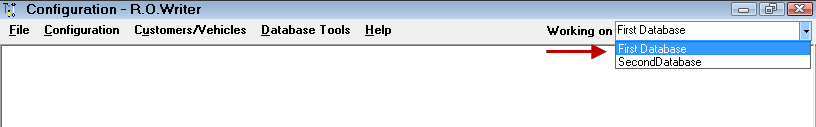 When you re-launch R.O. Writer and open Configuration, a dropdown list of the databases appears in the upper right corner.