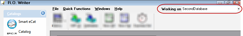 When you open main R.O. Writer, you should now see the same dropdown list on the main window. It indicates which database is displaying in the WIP and Estimates in Progress windows.