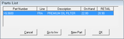 - If the part number is in your inventory file, you can post the original part Cost and Price back to the part.