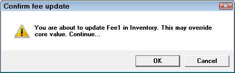 If certain fees are included in the group, you can apply those fees globally to all parts in the group at once by clicking the Update Fees In Inv button. A message appears repeating your selections and asking you to confirm.