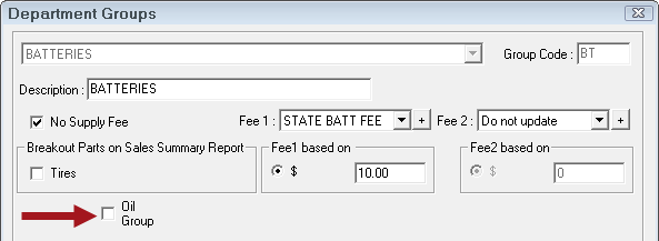 Only one group may be defined as the oil group. The Oil Group option appears only if there is no oil group in the system already. If you don’t see the Oil Group option on the window, that is because one of the parts department groups is already designated as the oil group.