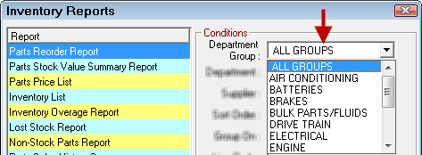 Inventory reports can be run for each group to help you track which specific parts are in department groups.