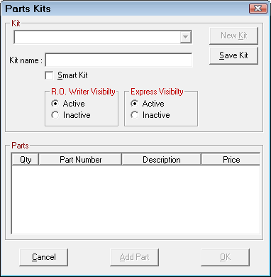 NOTE: Parts Kits may also be created from estimates or repair orders; see Adding and Creating Parts Kits.