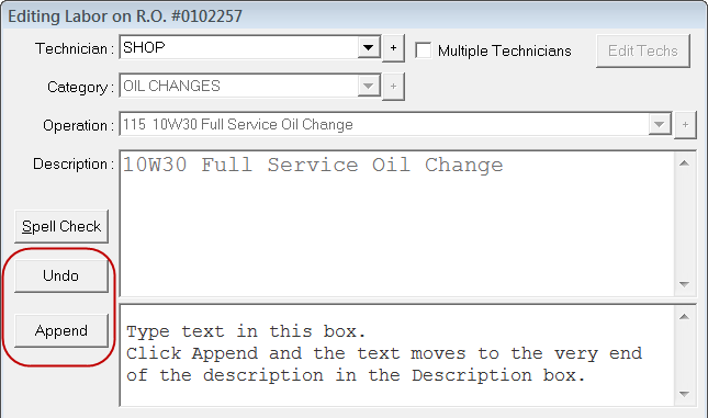 - Undo - Click to remove text added by the Append button.