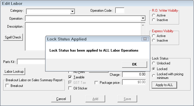 This setting does not apply to new labor operations you add. New labor operations will have the default Unlocked Lock Status and have to be locked individually.