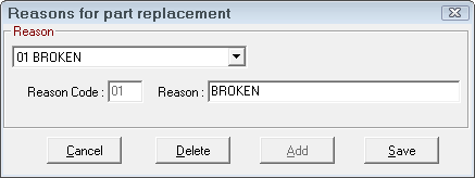 - On the Reasons for Part Replacement window, click the Add button.