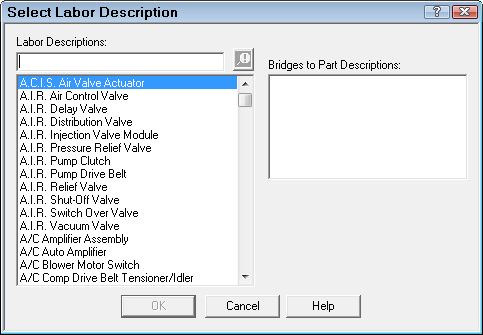 - Enter all or a portion of the Labor Descriptions. The list of matching items appears.