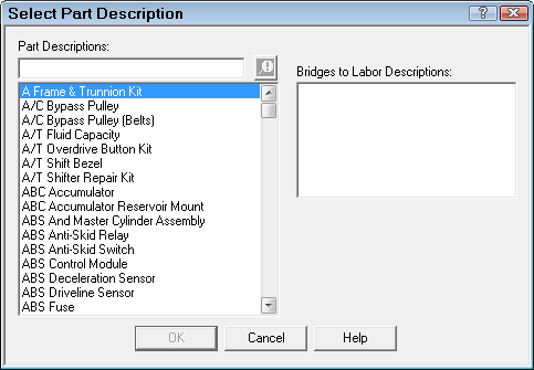 - In the box beneath Part Descriptions, enter all or a portion of the part description,
