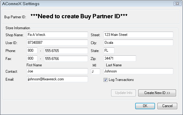 - Enter the Shop Name, User ID, address, phone, and contact information for your local trading partner.