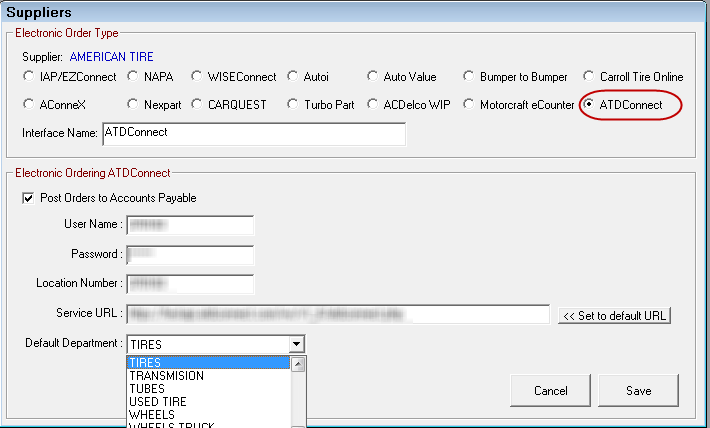 Setting up ATD Connect as an electronic ordering interface allows you search for tires in Tire Quote.