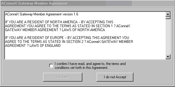 - When you have entered all required information, click the Create New ID button. The AConneX Gateway Member Agreement opens.