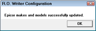 The main way to update R.O. Writer with Epicor makes and models is in Configuration.