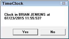 When an employee is clocked out, click the Punch In button. A prompt appears asking you to confirm the clock in and type.