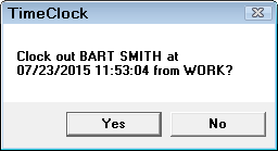 When an employee is clocked in, select the employee name and click the appropriate Punch Out button. A prompt appears asking you to confirm the clock out and type.