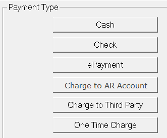 This section includes a button for each payment method that is available for the current customer and repair order. For more information, see Choosing a Payment Method.