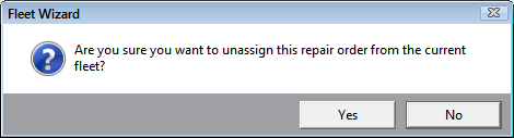 - Click Yes and the repair order and vehicle are no longer assigned to the fleet.