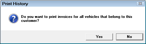 - Click No to print history for only the selected vehicle.