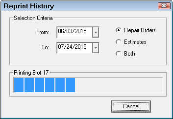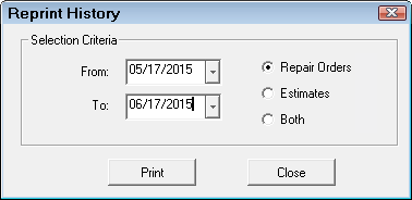 - The Reprint enables you to batch print all repair orders and estimates between a certain date range.