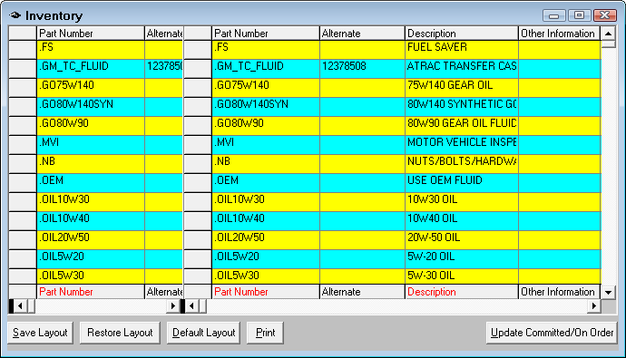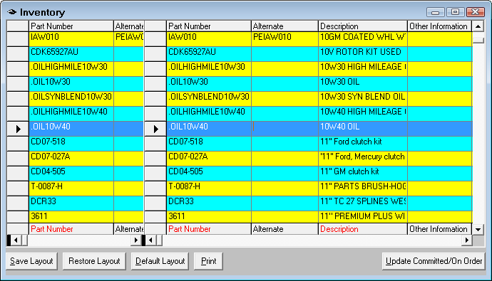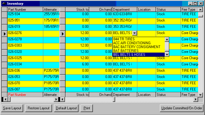 Any field may be used to search for desired inventory records. The scroll bar at the bottom may be used to move right or left to display additional fields.