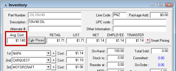 Average cost is the average cost of the part to your shop. This cost is used when the part is added to for estimates and repair orders. Average cost is based on the Item Size and the Cost from the 1st, 2nd, and 3rd suppliers.