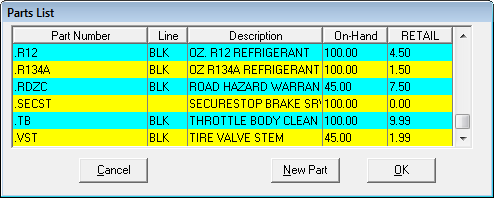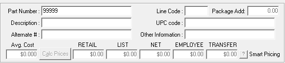 Part Number | This is your shop’s internal number for the part. This could be the vendor’s number, or something unique to the shop. Part numbers should not be duplicated unless the line code is different. This is also the search field. |