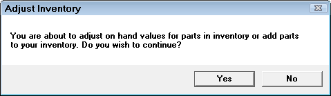 You can post the part to inventory if it’s being placed on your shelf by clicking the Post to Inventory button. You will see the following prompt to remind you that the on-hand values for the selected parts will be adjusted. Select Yes to continue.