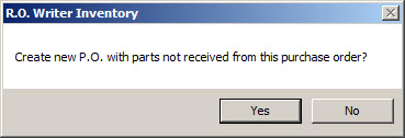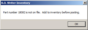 If a part received on a purchase order is a non-inventory part, a message appears, and the purchase order with that part remains open. The user has the option of adding the part to inventory, or deleting the part or purchase order.