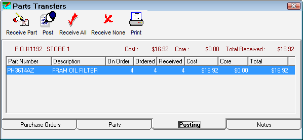 To Receive Parts on the Posting Tab