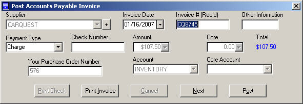 When all corrections have been made and the list is ready, the purchase order items must be posted to Inventory, which updates the inventory records with the quantity and cost of the parts received.
