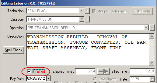To update the cost on the sub labor, each technician needs to open their own sub labor operation and check the Finished box.