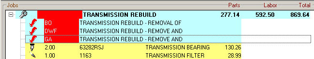 When the technician is finished with his part of the job, he or she should stop the labor time clock. To do so, select the sub labor line and press the letter "t" again.