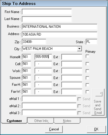 This window is the same as the Edit Customer Information window except that the Other Information and Notes tabs are disabled.
