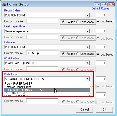The settings for estimates and repair orders generally apply to parts only tickets. However, there are a number of Configuration settings specific to parts only tickets.
