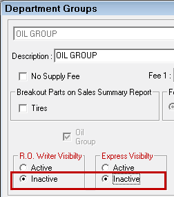 You cannot delete the oil group, but you are able to make it inactive in R. O. Writer and Express by selecting the Inactive option on the Parts Department Group window.