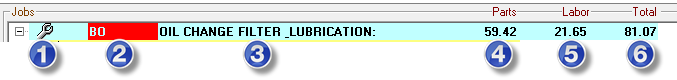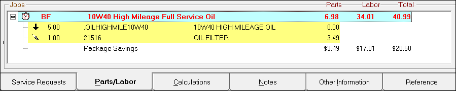 In the non-job-based view, parts and labor are divided and display in their own sections: