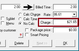 If the job calculates charges according to Billed Time, that amount displays on the line.