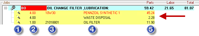 The price of the parts in the labor operation or Smart eJob. This is the parts-only total; it does not include labor.