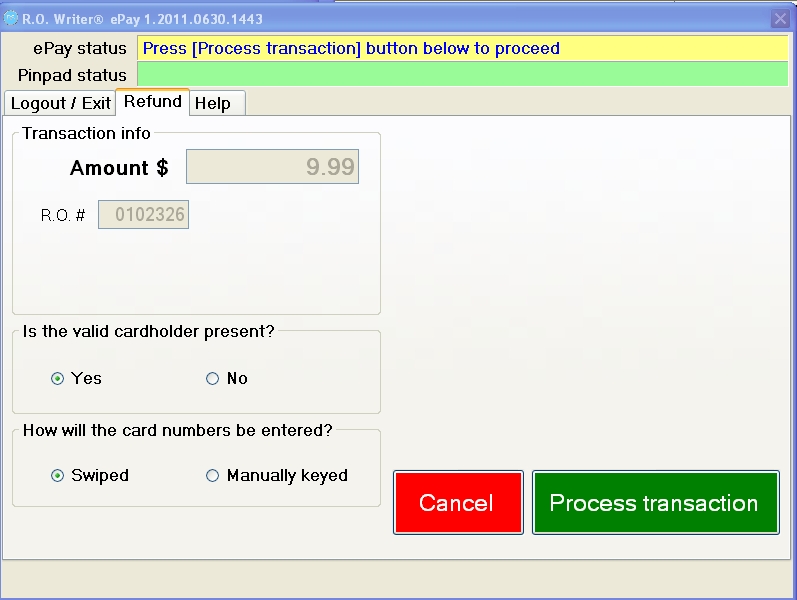 - You will need to select if the valid cardholder is present and if the card will be swiped or manually keyed.