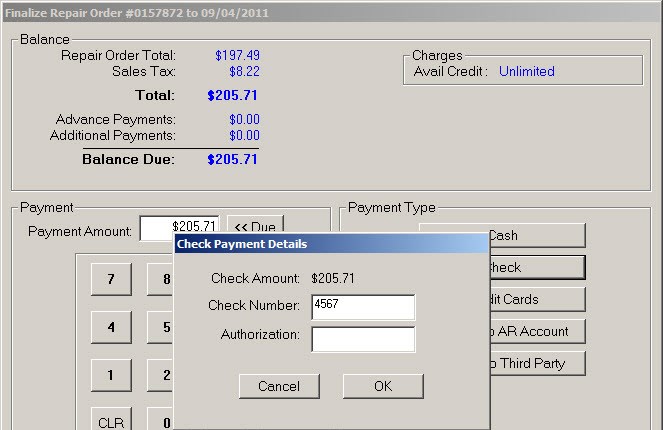 R.O. Writer provides you with the option to enter and process paper check payments.