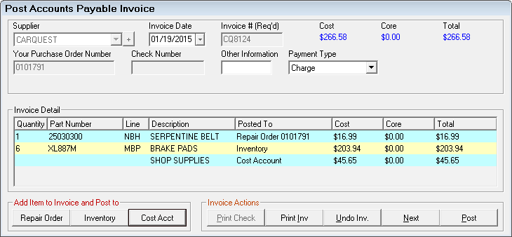 When you click the Post AP button in the main toolbar of R.O. Writer,