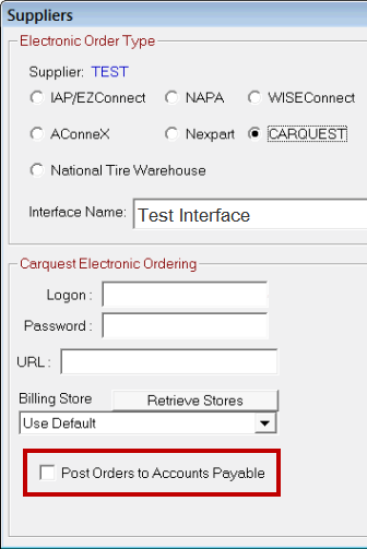 R.O. Writer can be configured to post part orders to Accounts Payable (AP) automatically when ordering from eOrder and Smart eOrder/Smart eCat, Smart eJob, and Smart eOrder.