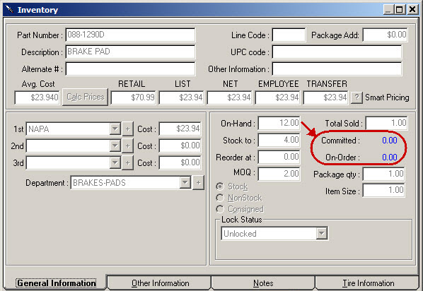 NOTE: If the Ignore On Order Parts When Displaying On Hand Inventory Quantities option is selected in Configuration, the On Order quantity is not added.