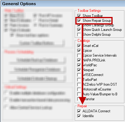 - Toolbar Settings section > Show Repair Group to make the section appear