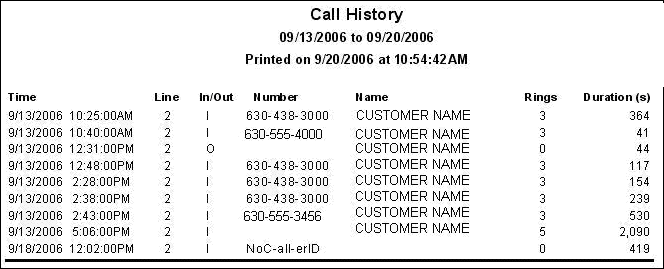 This report is used with the Caller ID feature (see Caller ID for more information).