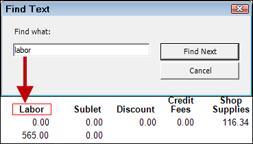 Click Find Next and the screen jumps to and highlights the matching text. |
