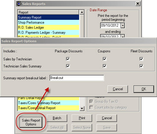 This option applies only to the R.O. Sales Ledger. When separate Tax IDs are set up, this report groups repair orders by Tax ID (see Multiple Tax Rates).